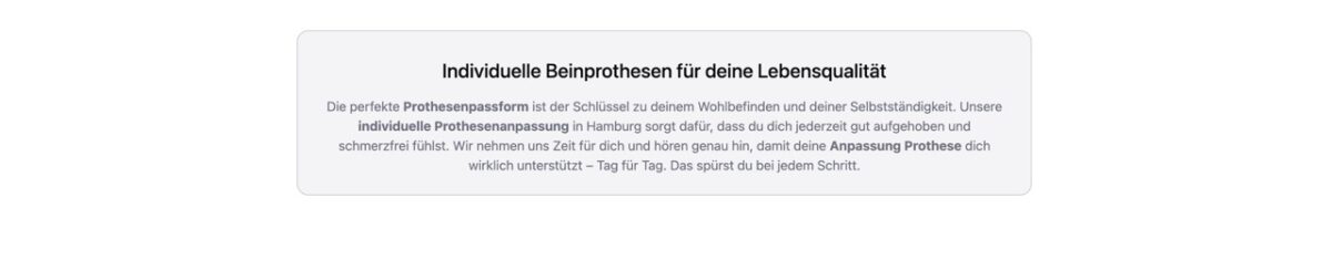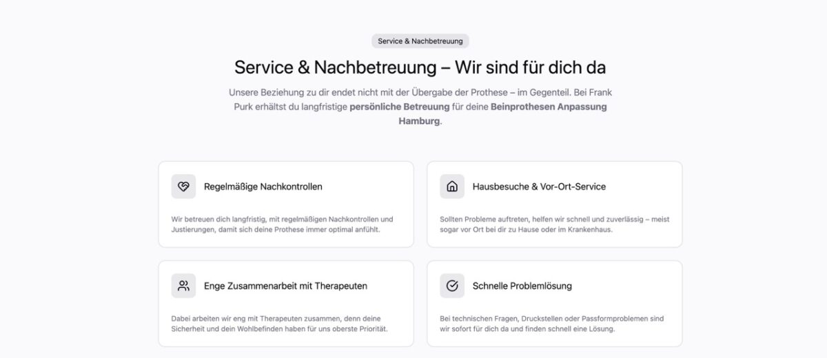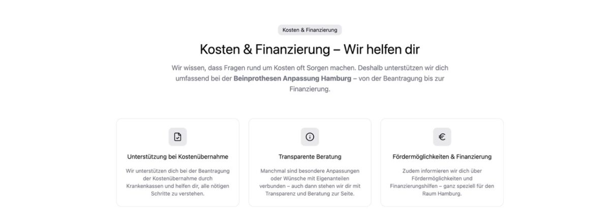 Hier findest du Antworten auf die häufigsten Fragen zur Beinprothesen Anpassung Hamburg, zum Anpassungsprozess, zu Kosten und zur Nachbetreuung.