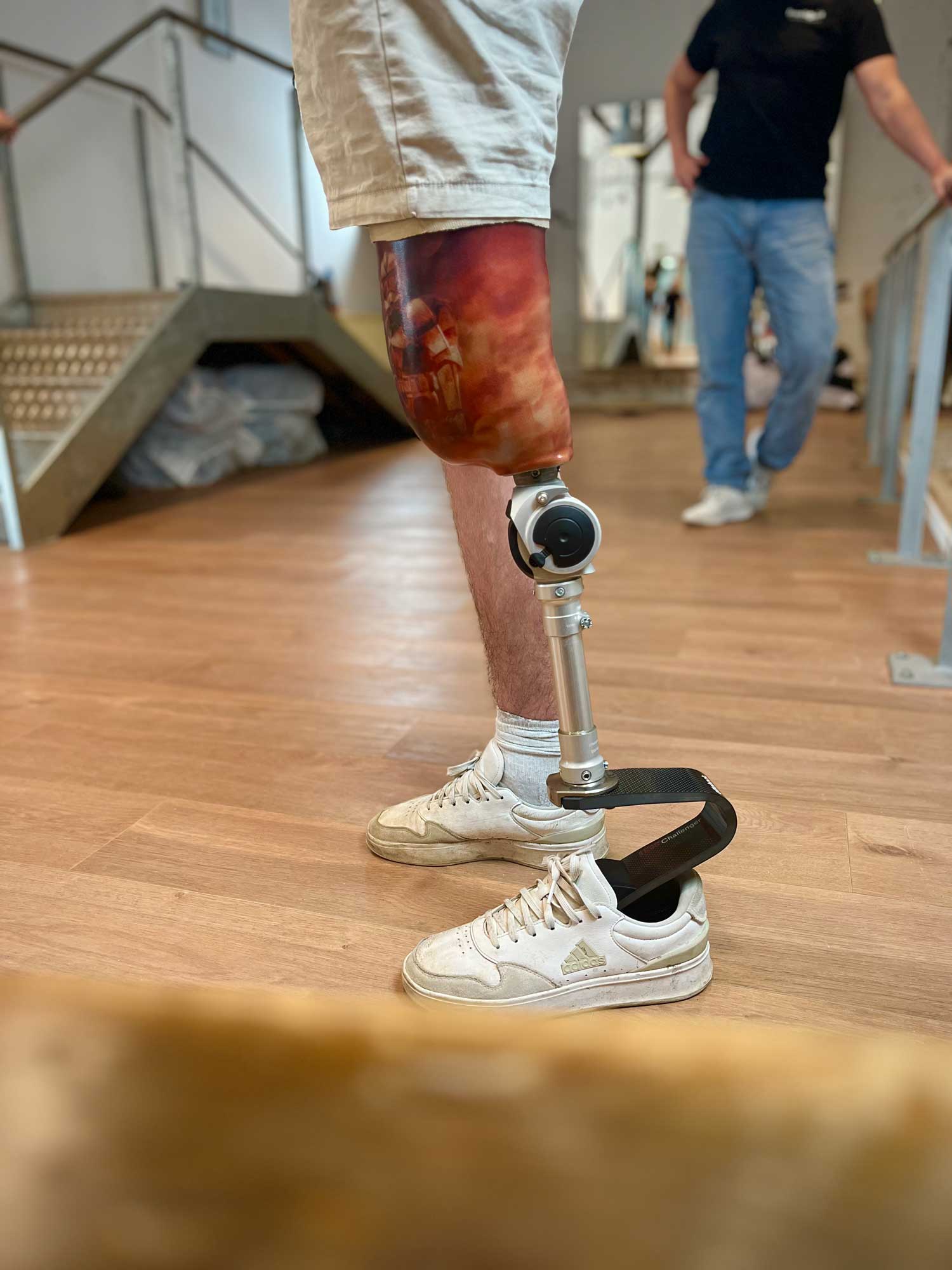 Die Beinprothese wird maßgeschneidert und präzise an deinen Körper angepasst, um Komfort und Funktionalität sicherzustellen.3.Probeversorgung